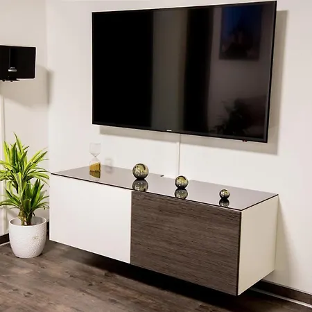 تتكوّن هذه الشقة من الفناء ومنطقة الجلوس، وتحتوي على الصالون، فضلاً عن وسائل الراحة الحديثة مثل التلفزيون مع قنوات فضائية والتلفزيون بشاشة مسطحة مع قنوات فضائية. تتوفّر أسرّة مع وسائد محشوة بالزغب تحت تصرف الضيوف. كما يحتوي مكان الإقامة على الدوش المتحرك والمرحاض المنفصل في الحمام. ستجد أيضًا مجفف الشعر.